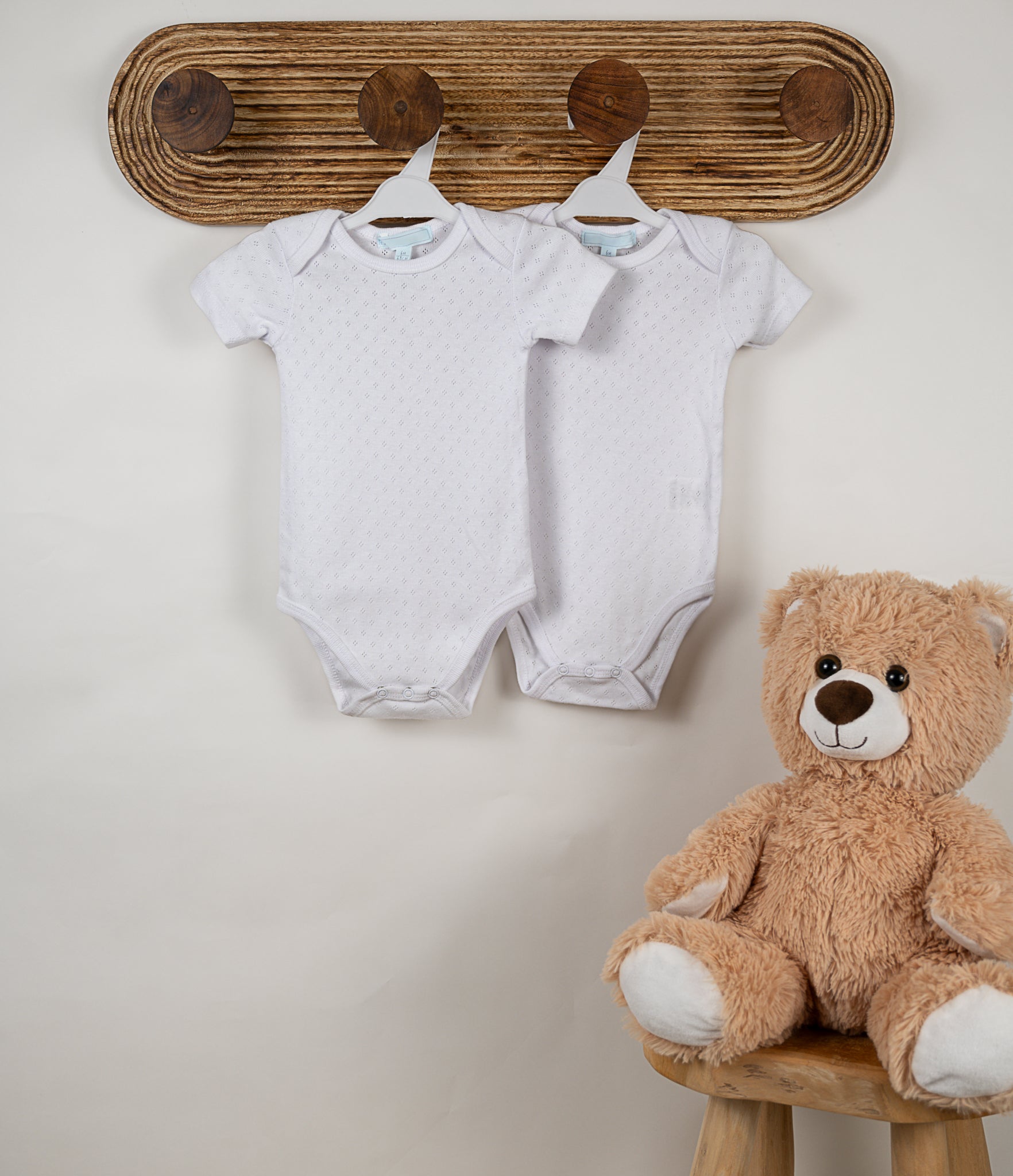 Lot de 2 bodys blanc UNISEXE, manches courtes avec fermeture à pressions par le bas du vêtement.